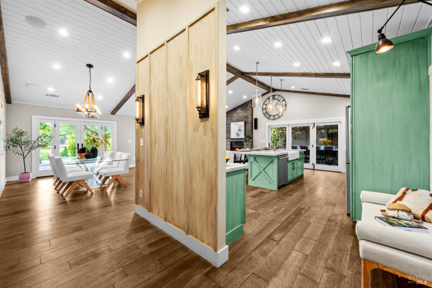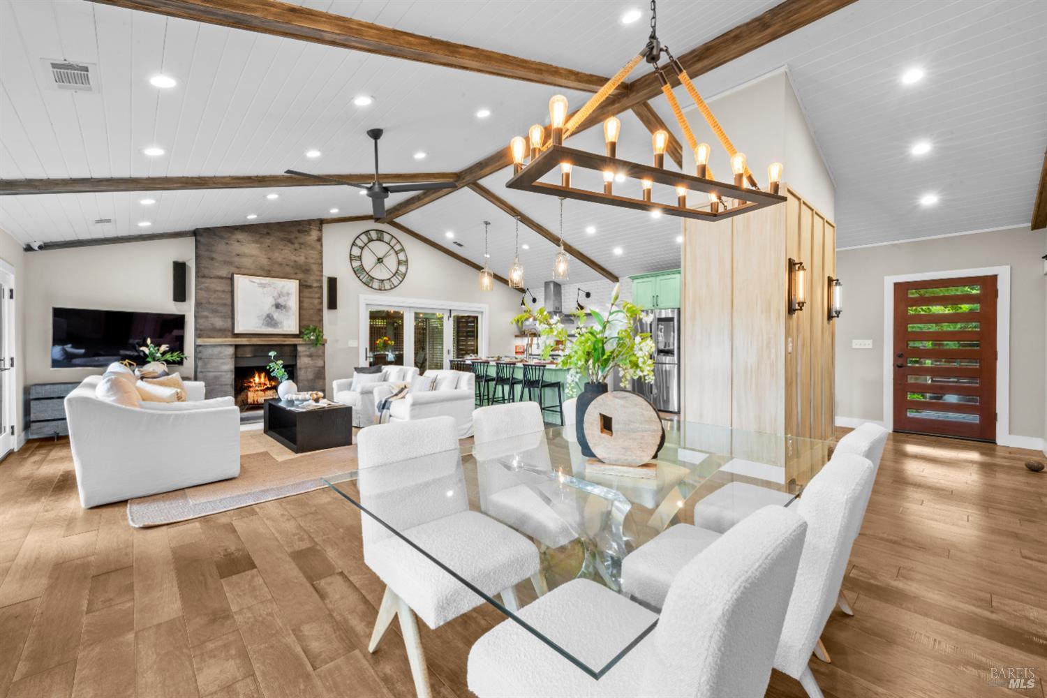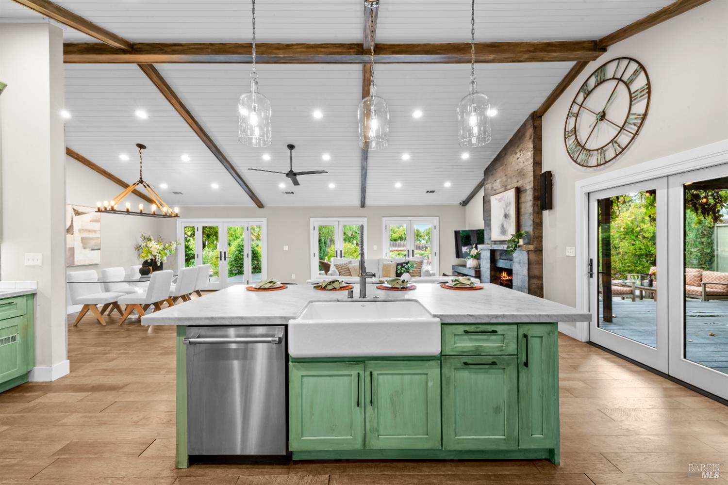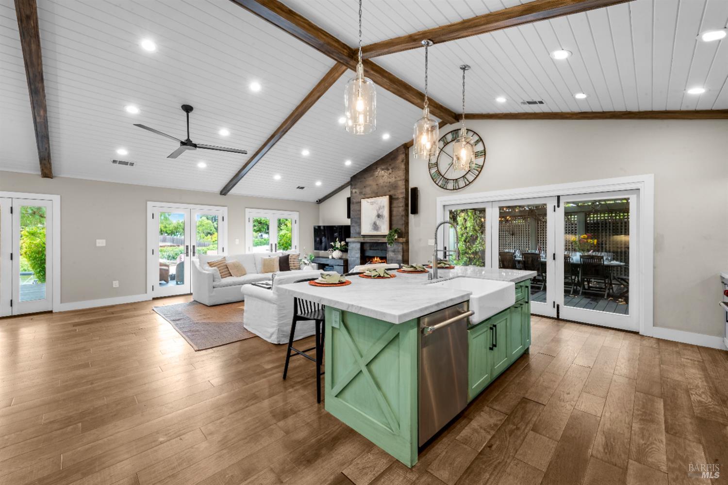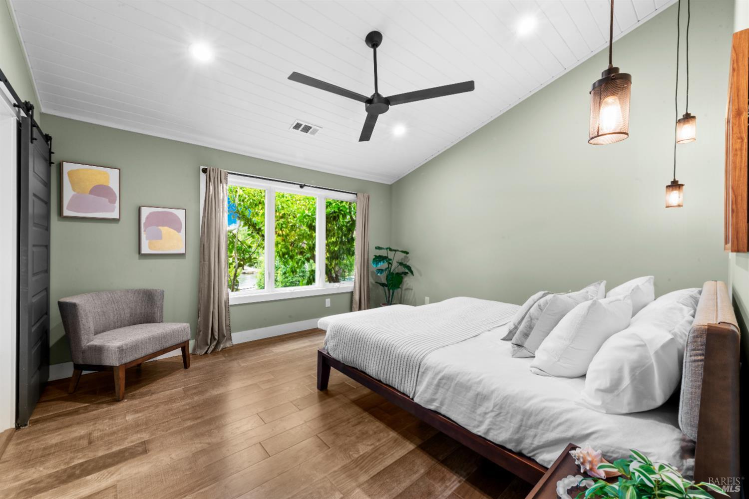 Abundance and Style define this custom single-level residence on .37 acre of Waterfront. Consummate Napa Valley living is easy as vast entertaining spaces flow seamlessly indoors and out. Life centers on a Great Room with wood-burning fireplace and views across a placid Pool onto Western light reflected on the River. All of this is set amidst a professional landscape designed for outdoor cooking, dining and farm-to-table culinary pleasure. The 70' dock on 264' of riverfront tempts you to relax on the friendly water in anticipation of a memorable evening, or play Bocce as the sun sets. Just as a Stainless and Gas open Kitchen with Carrara Marble surfaces will inspire any Chef, the Office/Media and Sleeping Rooms are a retreat apart from social and lounging spaces. Luxe Baths, Closets, and Storage assure serenity and respite from an active lifestyle. Rebuilt in 2016, conceived for sanctuary and wellness, every corner of this beautifully realized home offers comfort. From the Entry Courtyard to the huge Pergola laden with Winegrapes, across expansive IPE Decking to the Spa, and plantings on all four sides yielding Fruits, Vegetables and Herbs, this lush abode truly will feed your passion for living well. Solar, EV Charger, Light, Sound and Security systems simply enhance the luxury.