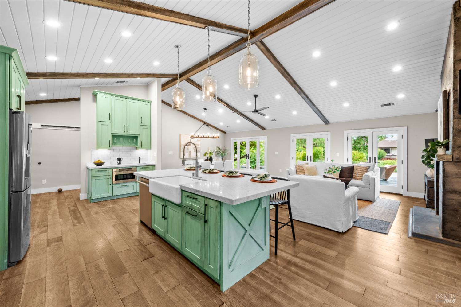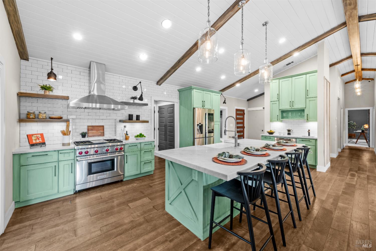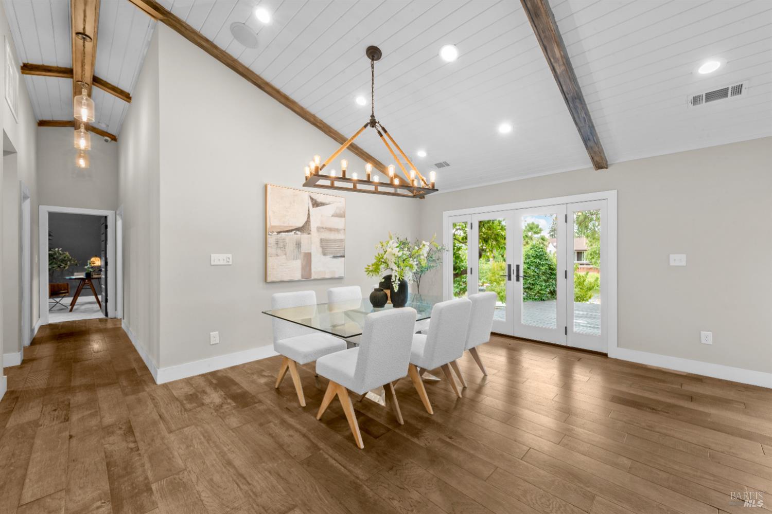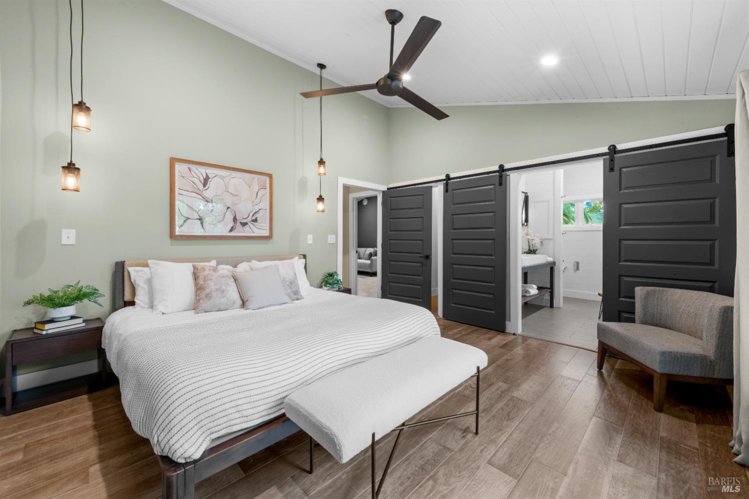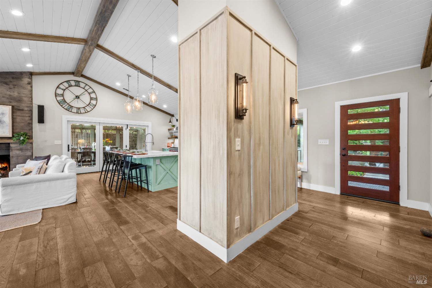 Abundance and Style define this custom single-level residence on .37 acre of Waterfront. Consummate Napa Valley living is easy as vast entertaining spaces flow seamlessly indoors and out. Life centers on a Great Room with wood-burning fireplace and views across a placid Pool onto Western light reflected on the River. All of this is set amidst a professional landscape designed for outdoor cooking, dining and farm-to-table culinary pleasure. The 70' dock on 264' of riverfront tempts you to relax on the friendly water in anticipation of a memorable evening, or play Bocce as the sun sets. Just as a Stainless and Gas open Kitchen with Carrara Marble surfaces will inspire any Chef, the Office/Media and Sleeping Rooms are a retreat apart from social and lounging spaces. Luxe Baths, Closets, and Storage assure serenity and respite from an active lifestyle. Rebuilt in 2016, conceived for sanctuary and wellness, every corner of this beautifully realized home offers comfort. From the Entry Courtyard to the huge Pergola laden with Winegrapes, across expansive IPE Decking to the Spa, and plantings on all four sides yielding Fruits, Vegetables and Herbs, this lush abode truly will feed your passion for living well. Solar, EV Charger, Light, Sound and Security systems simply enhance the luxury.