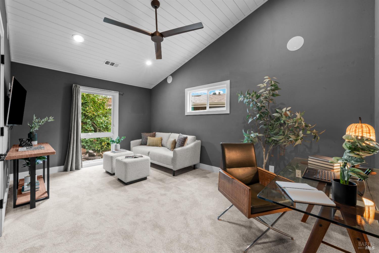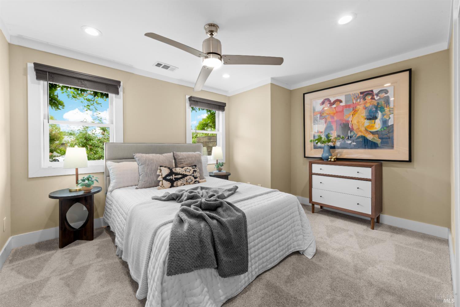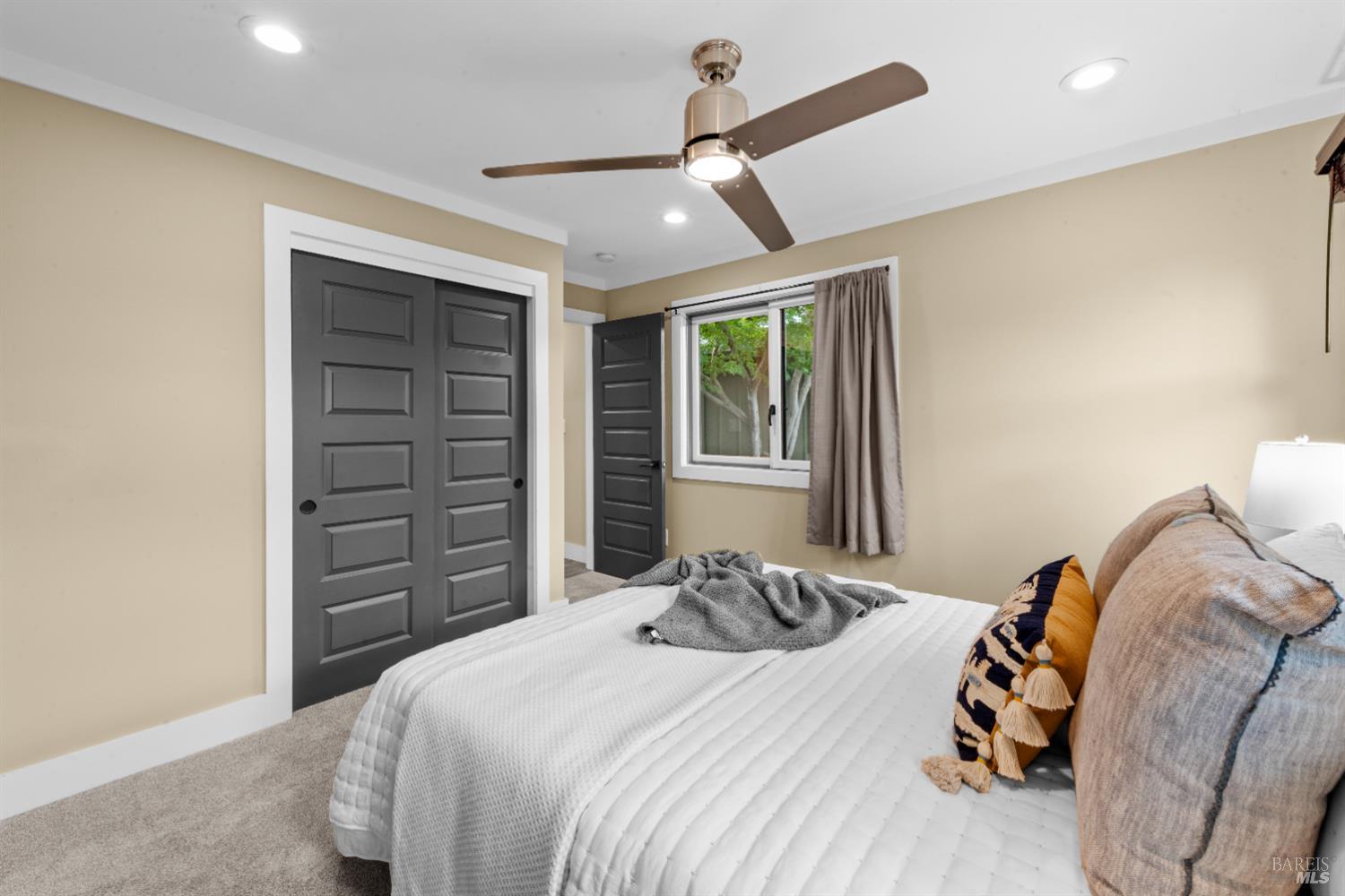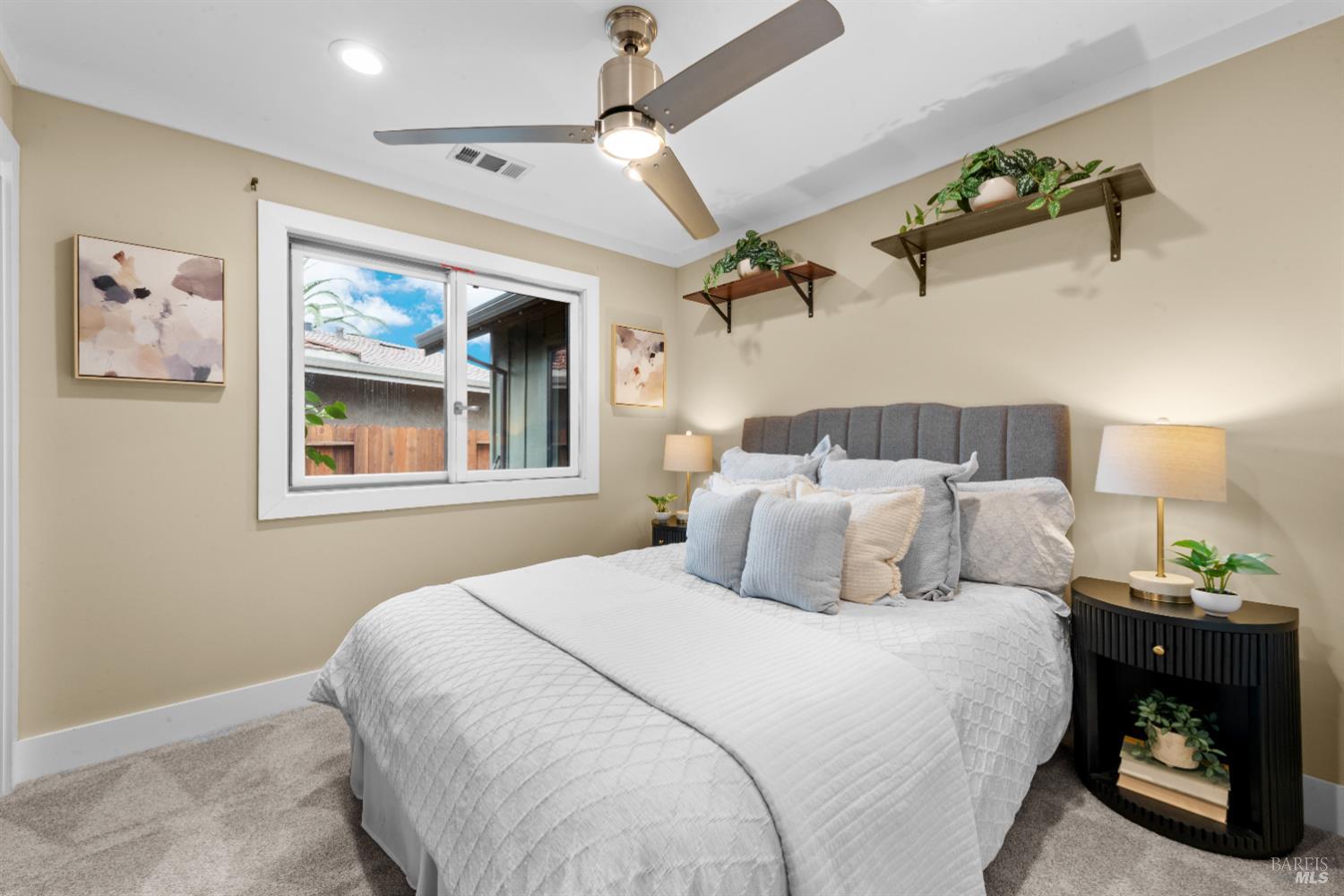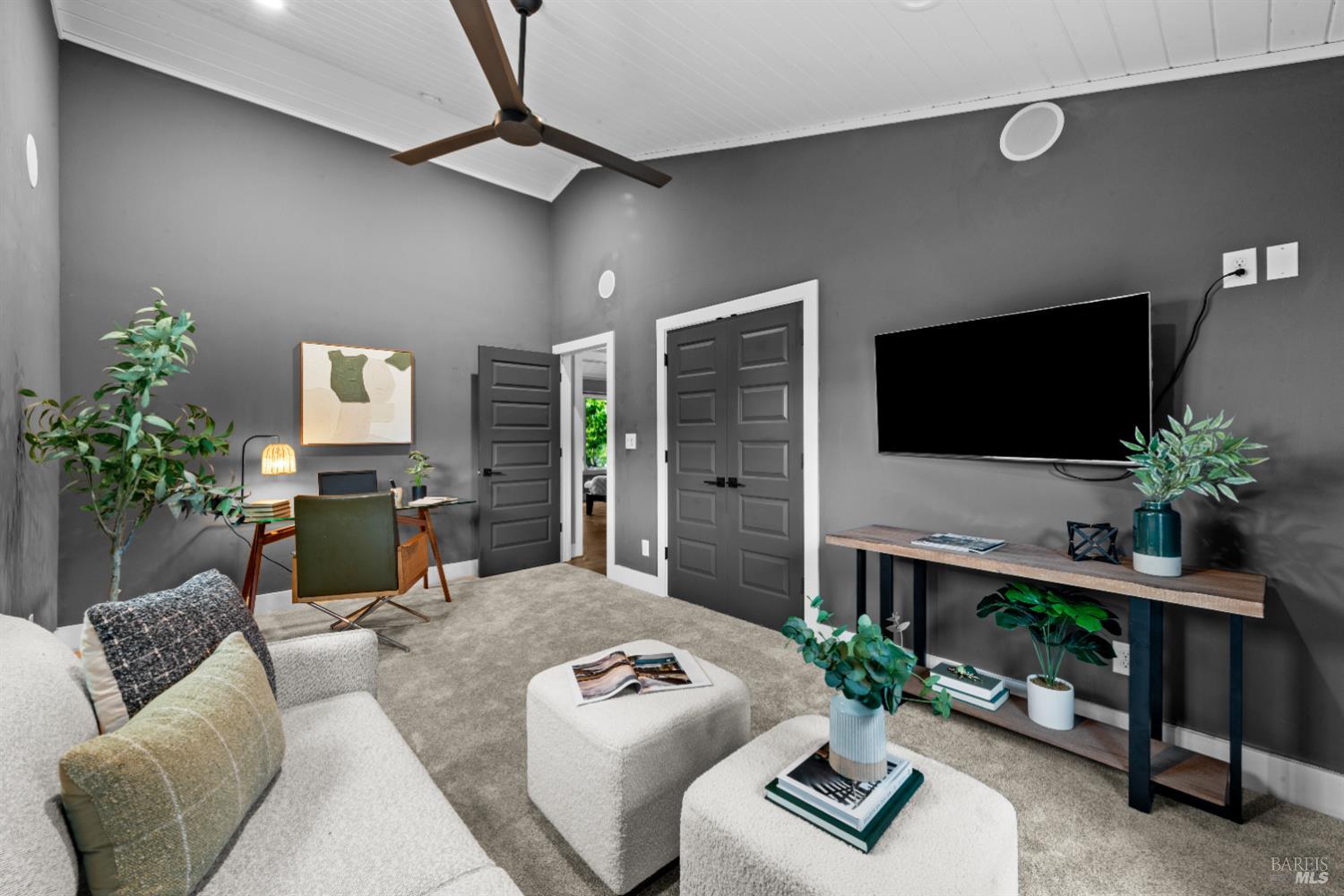 Abundance and Style define this custom single-level residence on .37 acre of Waterfront. Consummate Napa Valley living is easy as vast entertaining spaces flow seamlessly indoors and out. Life centers on a Great Room with wood-burning fireplace and views across a placid Pool onto Western light reflected on the River. All of this is set amidst a professional landscape designed for outdoor cooking, dining and farm-to-table culinary pleasure. The 70' dock on 264' of riverfront tempts you to relax on the friendly water in anticipation of a memorable evening, or play Bocce as the sun sets. Just as a Stainless and Gas open Kitchen with Carrara Marble surfaces will inspire any Chef, the Office/Media and Sleeping Rooms are a retreat apart from social and lounging spaces. Luxe Baths, Closets, and Storage assure serenity and respite from an active lifestyle. Rebuilt in 2016, conceived for sanctuary and wellness, every corner of this beautifully realized home offers comfort. From the Entry Courtyard to the huge Pergola laden with Winegrapes, across expansive IPE Decking to the Spa, and plantings on all four sides yielding Fruits, Vegetables and Herbs, this lush abode truly will feed your passion for living well. Solar, EV Charger, Light, Sound and Security systems simply enhance the luxury.