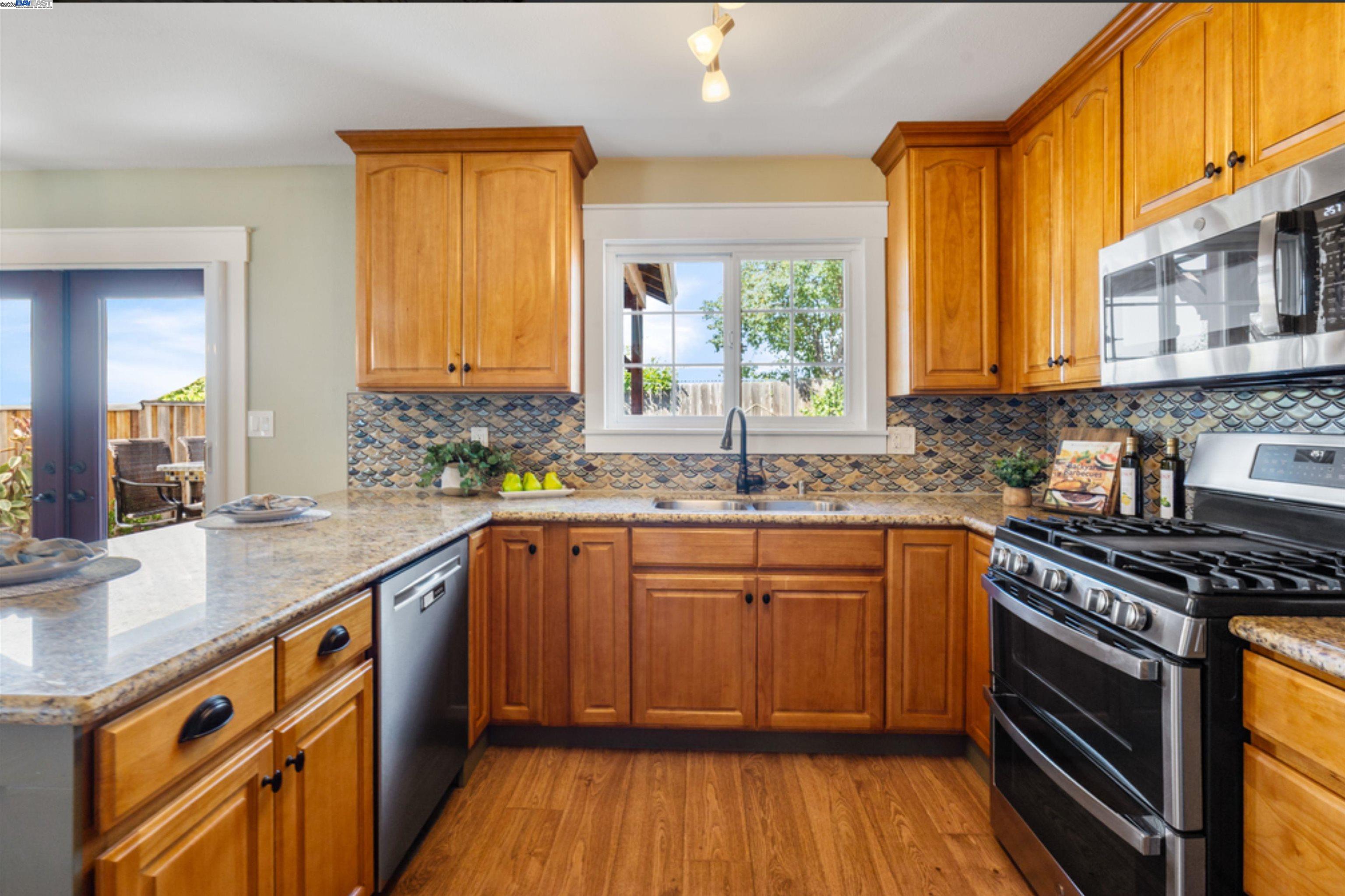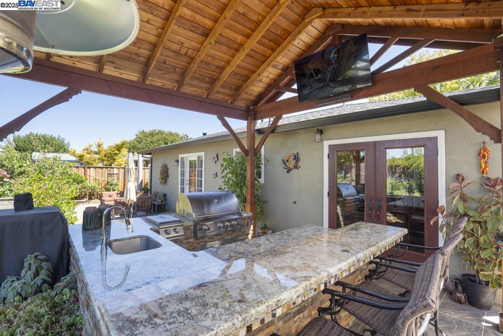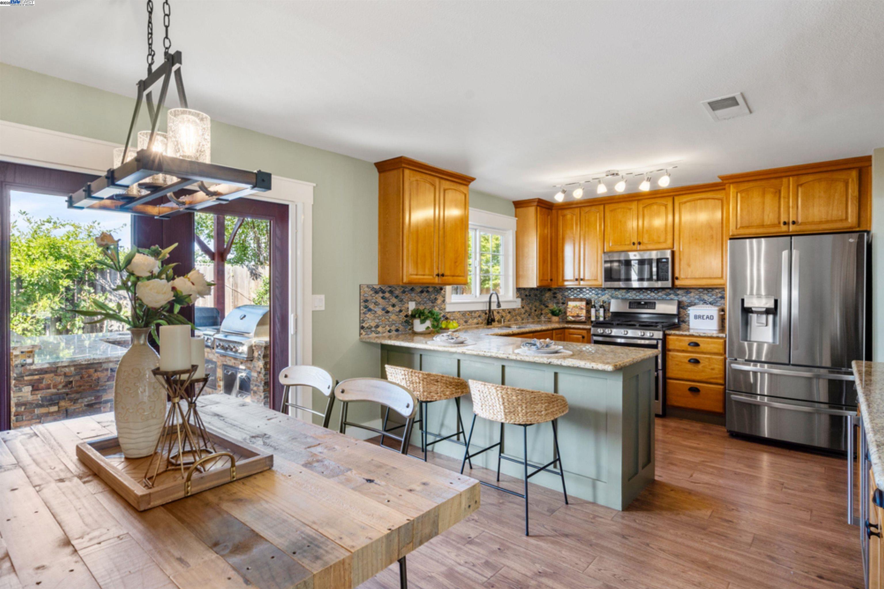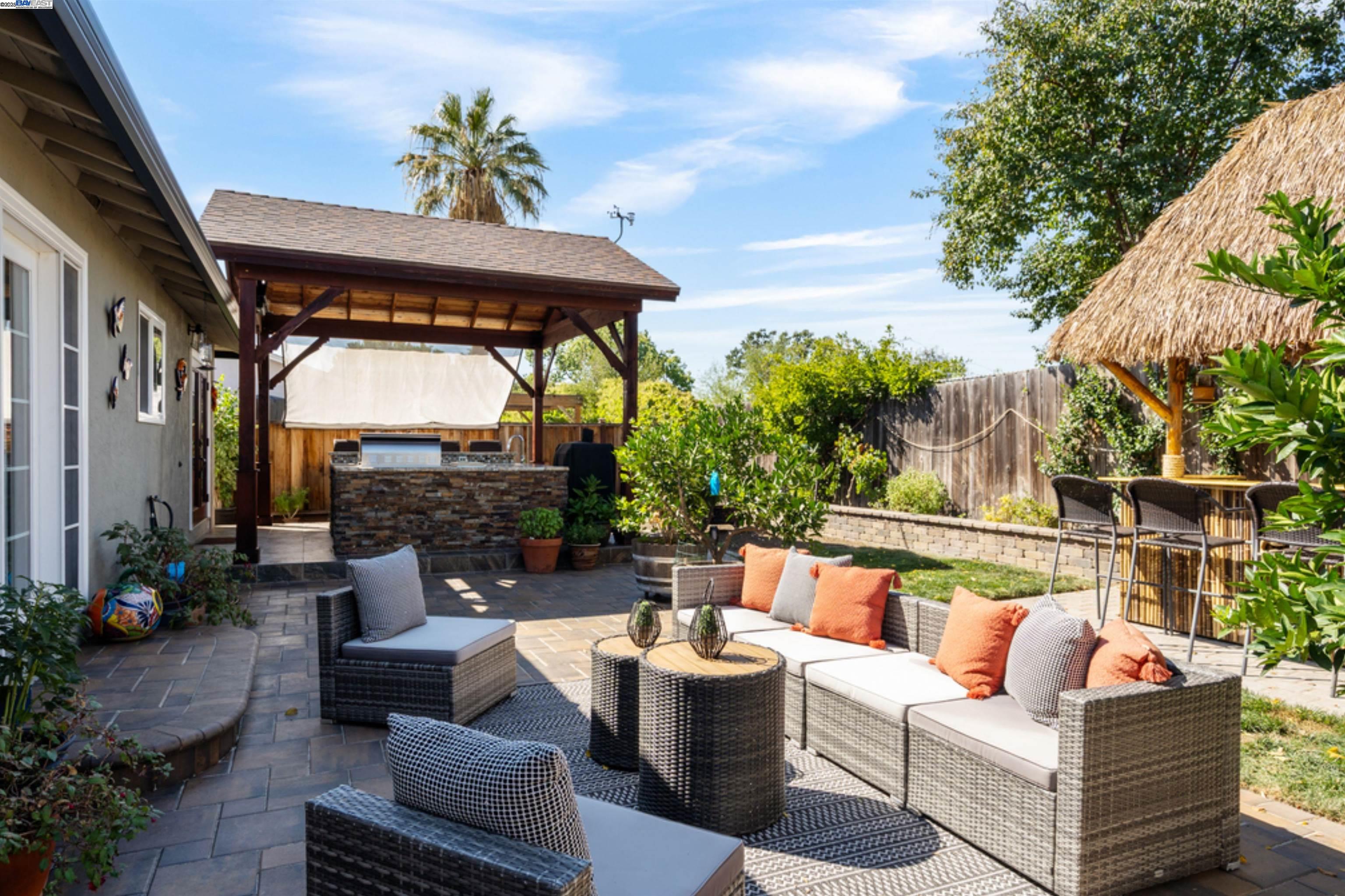 Built in 1959 in the Sunset West neighborhood of Livermore, walking distance to Joe Mitchell elementary, Mendenhall middle school and Granada High school is a beautifully renovated single family, 3 bedroom, 2 bathroom, 1148 sq. ft. home that blends modern upgrades with exceptional indoor–outdoor living on a 6000+ lot. This home is completely dialed in! A thoughtfully updated kitchen featuring stainless steel appliances, a wine cooler, granite countertops, and a stylish tile backsplash, newly refinished hardwood floors, wainscoting, tiled fireplace, surround sound system, new windows, fresh interior/exterior paint, new roof, solar panels with 2 power banks are just a few of the upgrades! Double glass doors with phantom screens open seamlessly from the kitchen to the ultimate backyard retreat. The outdoor entertainment area is fully covered by a striking wood-beamed pergola, designed for year-round enjoyment. Highlights include a built-in BBQ kitchen with granite countertops, a sit-up bar, mounted TV, slate flooring, and to top it off, the back yard features its very own Tiki Bar!—Perfect for outdoor gatherings with family and friends. Pride of ownership is an understatement with regards to this beautiful home and it could be yours! Say YES to this address - 958 El Caminito!