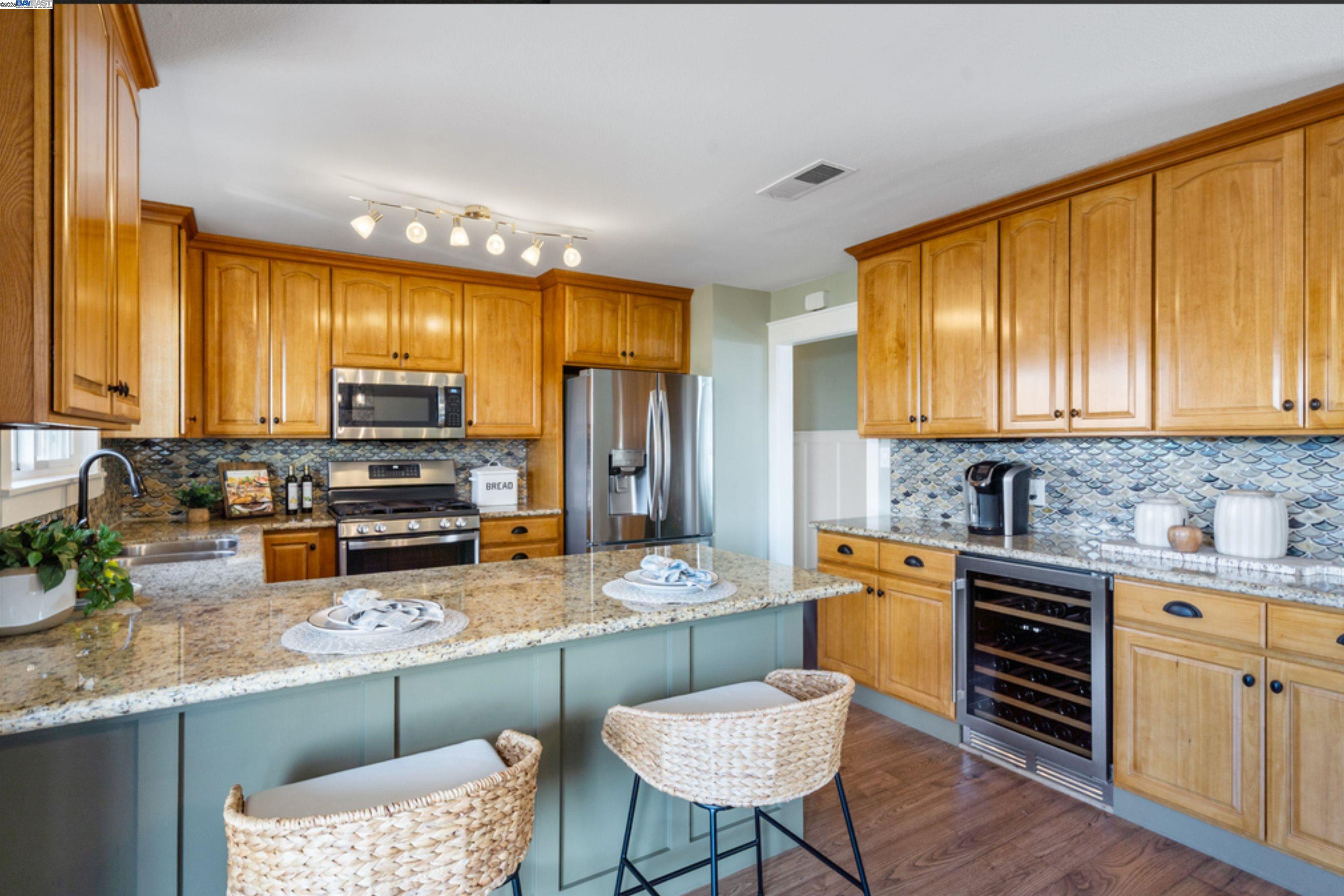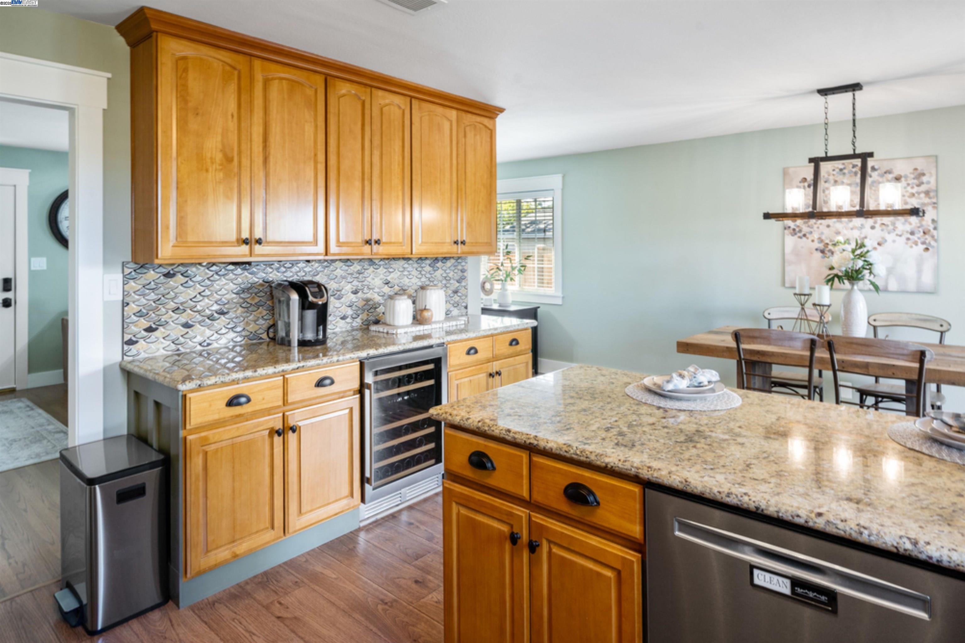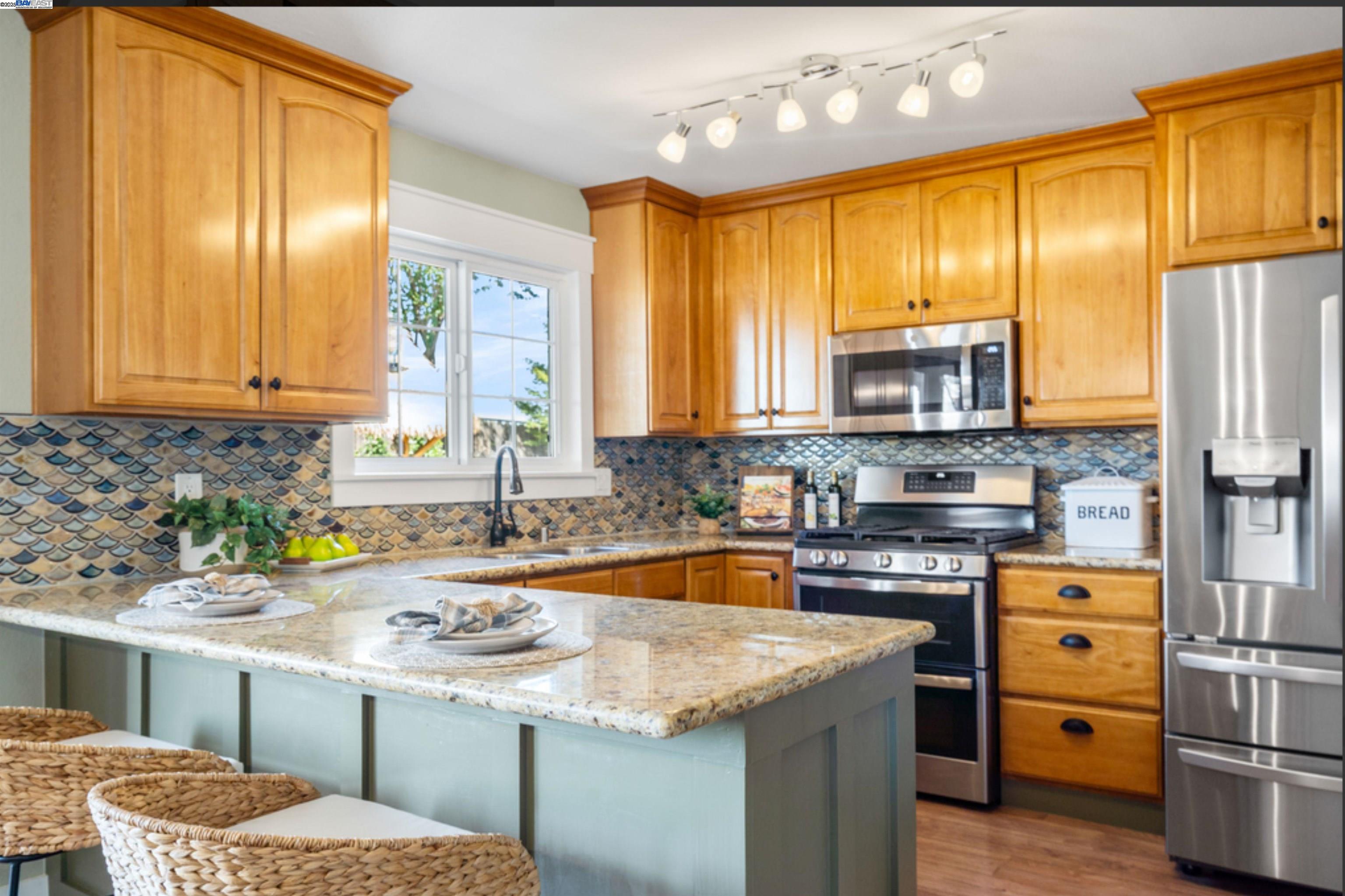 Built in 1959 in the Sunset West neighborhood of Livermore, walking distance to Joe Mitchell elementary, Mendenhall middle school and Granada High school is a beautifully renovated single family, 3 bedroom, 2 bathroom, 1148 sq. ft. home that blends modern upgrades with exceptional indoor–outdoor living on a 6000+ lot. This home is completely dialed in! A thoughtfully updated kitchen featuring stainless steel appliances, a wine cooler, granite countertops, and a stylish tile backsplash, newly refinished hardwood floors, wainscoting, tiled fireplace, surround sound system, new windows, fresh interior/exterior paint, new roof, solar panels with 2 power banks are just a few of the upgrades! Double glass doors with phantom screens open seamlessly from the kitchen to the ultimate backyard retreat. The outdoor entertainment area is fully covered by a striking wood-beamed pergola, designed for year-round enjoyment. Highlights include a built-in BBQ kitchen with granite countertops, a sit-up bar, mounted TV, slate flooring, and to top it off, the back yard features its very own Tiki Bar!—Perfect for outdoor gatherings with family and friends. Pride of ownership is an understatement with regards to this beautiful home and it could be yours! Say YES to this address - 958 El Caminito!